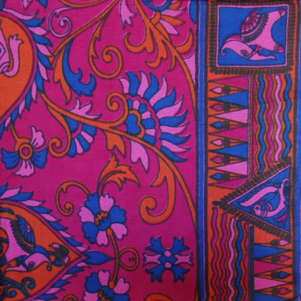 Sjaal van 100% zijde met paardjes in vrolijke kleuren en bloemenranden
