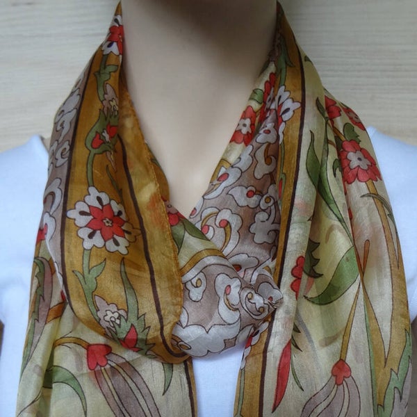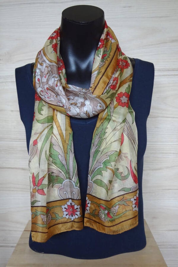 zijden sjaal licht geel met bloemen