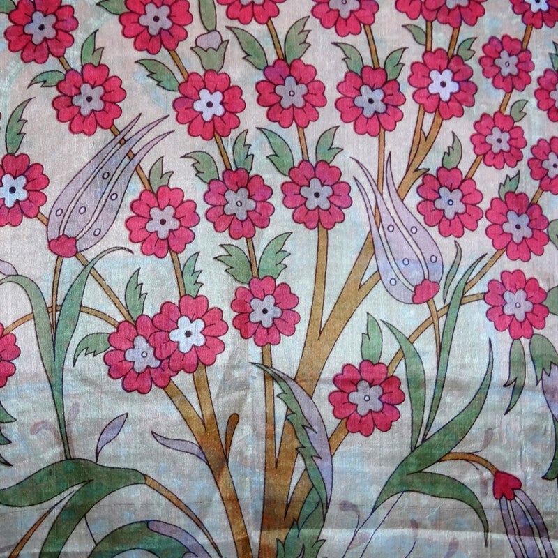 Sjaal van 100% zijde, met bloemen in vrolijke kleuren en bloemenranden