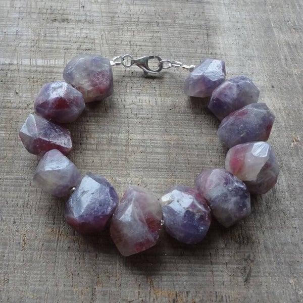 Armband van ruwe brokjes natuurlijke toermalijn 12-20mm. De armband heeft een stevig zilveren kreeftsluiting.