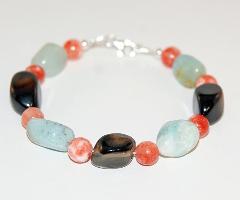 Armband van onyx, amazoniet en oranje jade