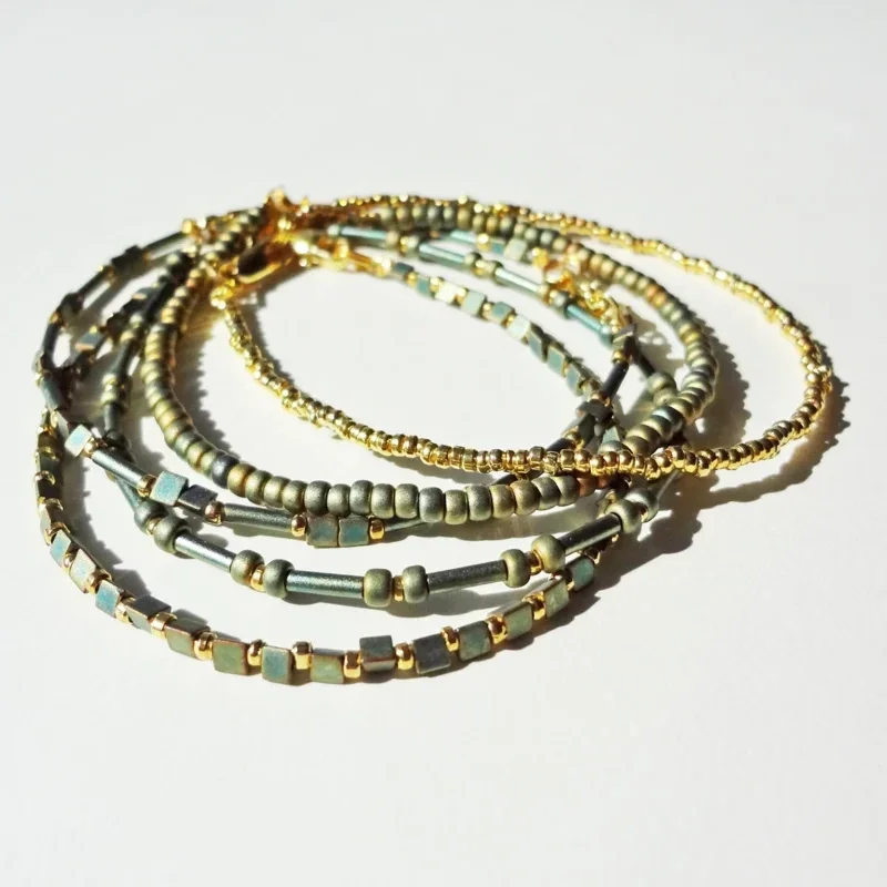 Armbandjes van verschillende soorten metallic kraaltjes en gold plated kraaltjes. Leuk om als setje te kopen en te dragen, maar kan ook apart worden gekocht.