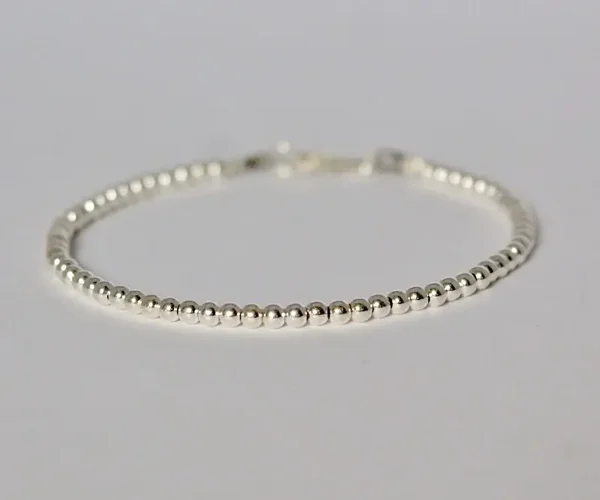 Dit armbandje is gemaakt van sterling zilveren kraaltjes van 3mm. De sprankelende kraaltjes zijn op zonnige dagen echte eyecatchers en zullen daarom opvallen in combinatie met andere armbanden, maar zijn ook prima alleen te dragen.