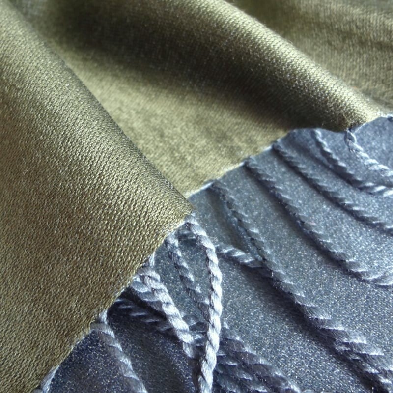 Zijden sjaal mosgroen/ijsblauw