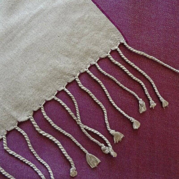 Reversible sjaal van 100% zijde in warme contrasterende kleuren, met gedraaide franje. Deze kwaliteit zijden sjaal heeft een prachtige glans en kleuren die veranderen bij elke beweging.