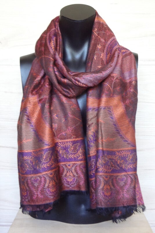 Prachtige zijden sjaal met ingeweven dessin. Deze sjaal is zacht en soepel en kan op zowel een stijlvolle als nonchalante manier gedragen worden.