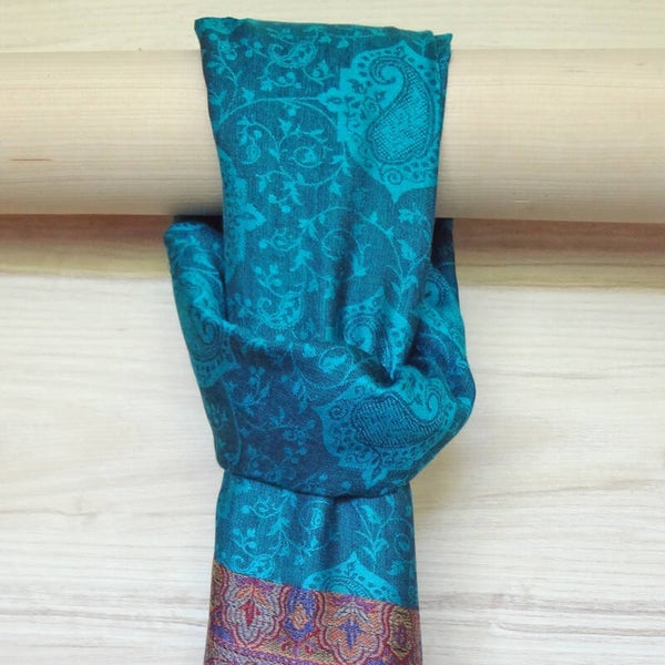 Prachtige sjaal met ingeweven dessin. Deze sjaal heeft een luxe uitstraling en een licht glanseffect. Kan op zowel een stijlvolle als nonchalante manier gedragen worden.