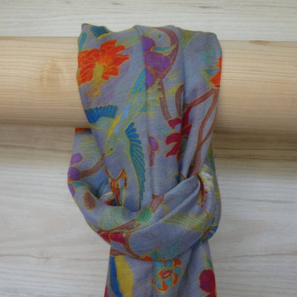 Sjaal uitgevoerd in een zachte viscose kwaliteit, met een all over print van kolibries