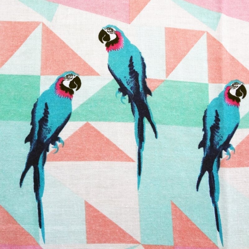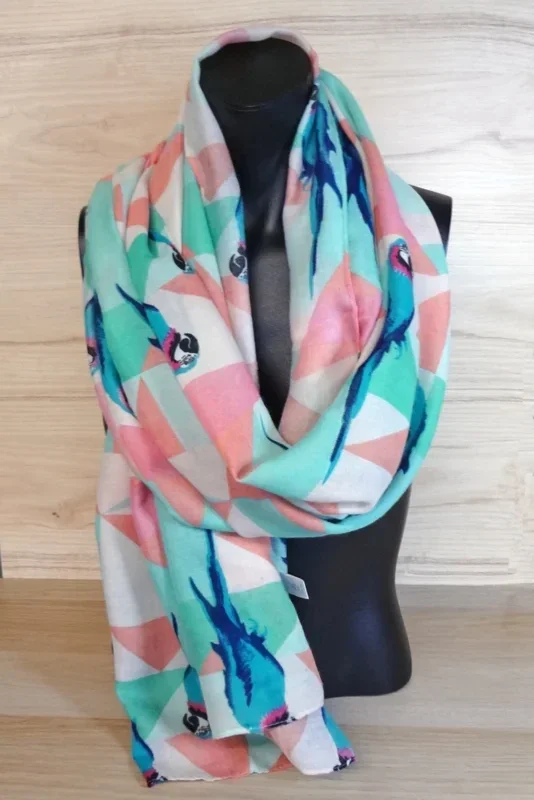 Royale sjaal/omslagdoek uitgevoerd in een zachte kwaliteit polyester met een all over grafische print met papegaaien.