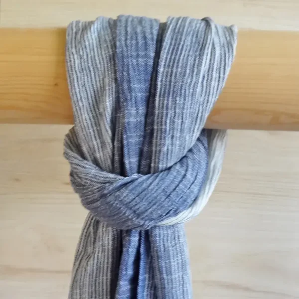 Zachte, prettig draagbare, sjaal met streep verloop. Een leuke sjaal om nonchalant te dragen.