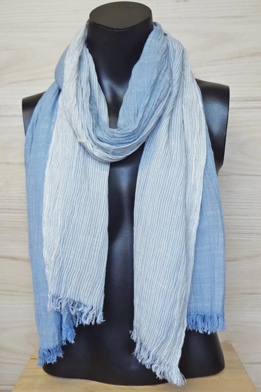 Zachte, prettig draagbare, sjaal met streep verloop. Een leuke sjaal om nonchalant te dragen.