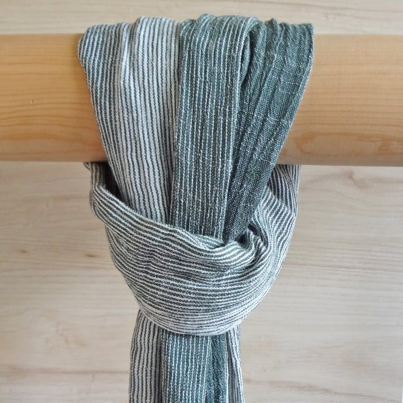 Zachte, prettig draagbare, sjaal met streep verloop. Een leuke sjaal om nonchalant te dragen.